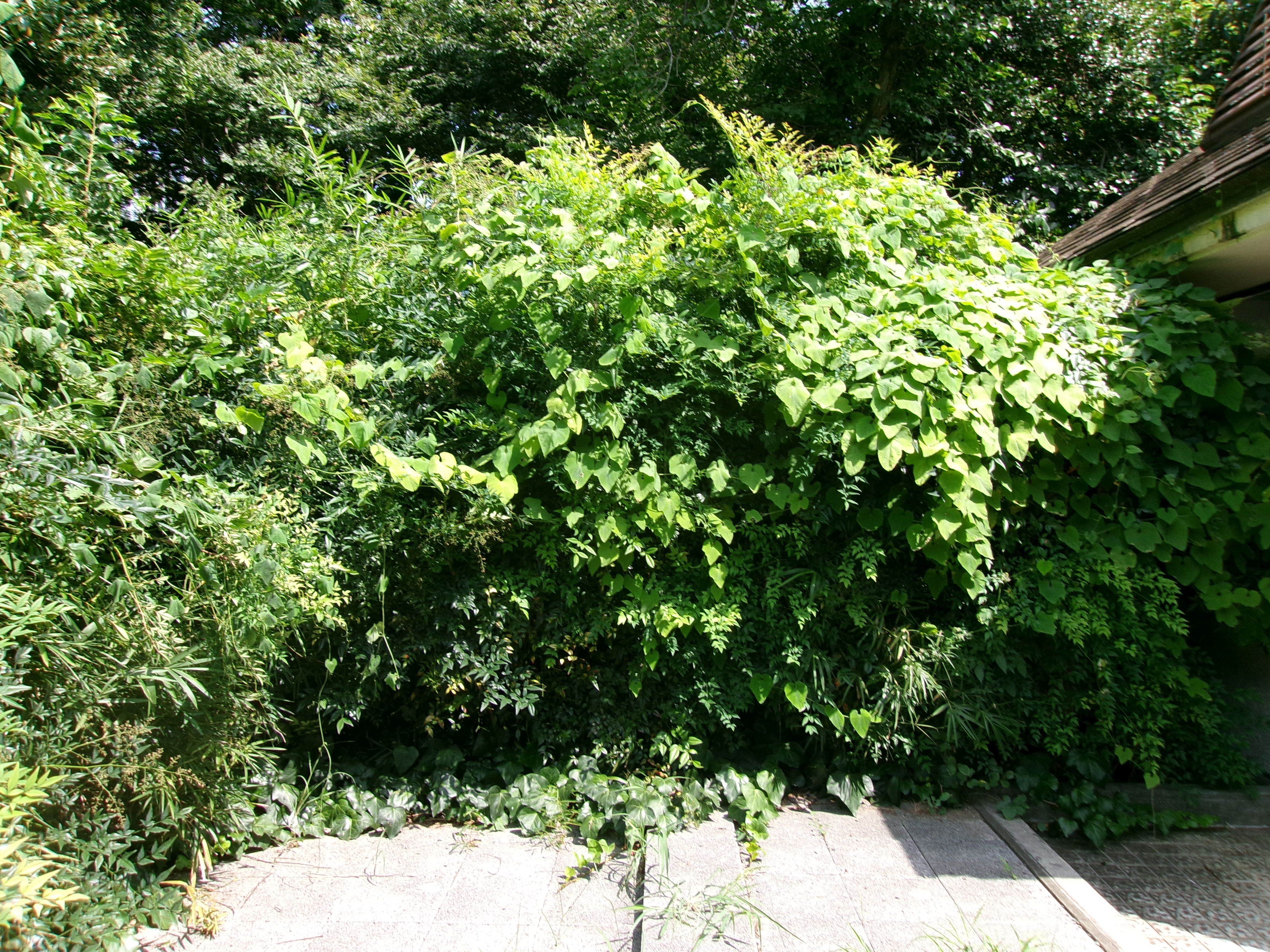 ササがかなりの高さになってしまい、ツタ類も絡まって奥が見えない状態