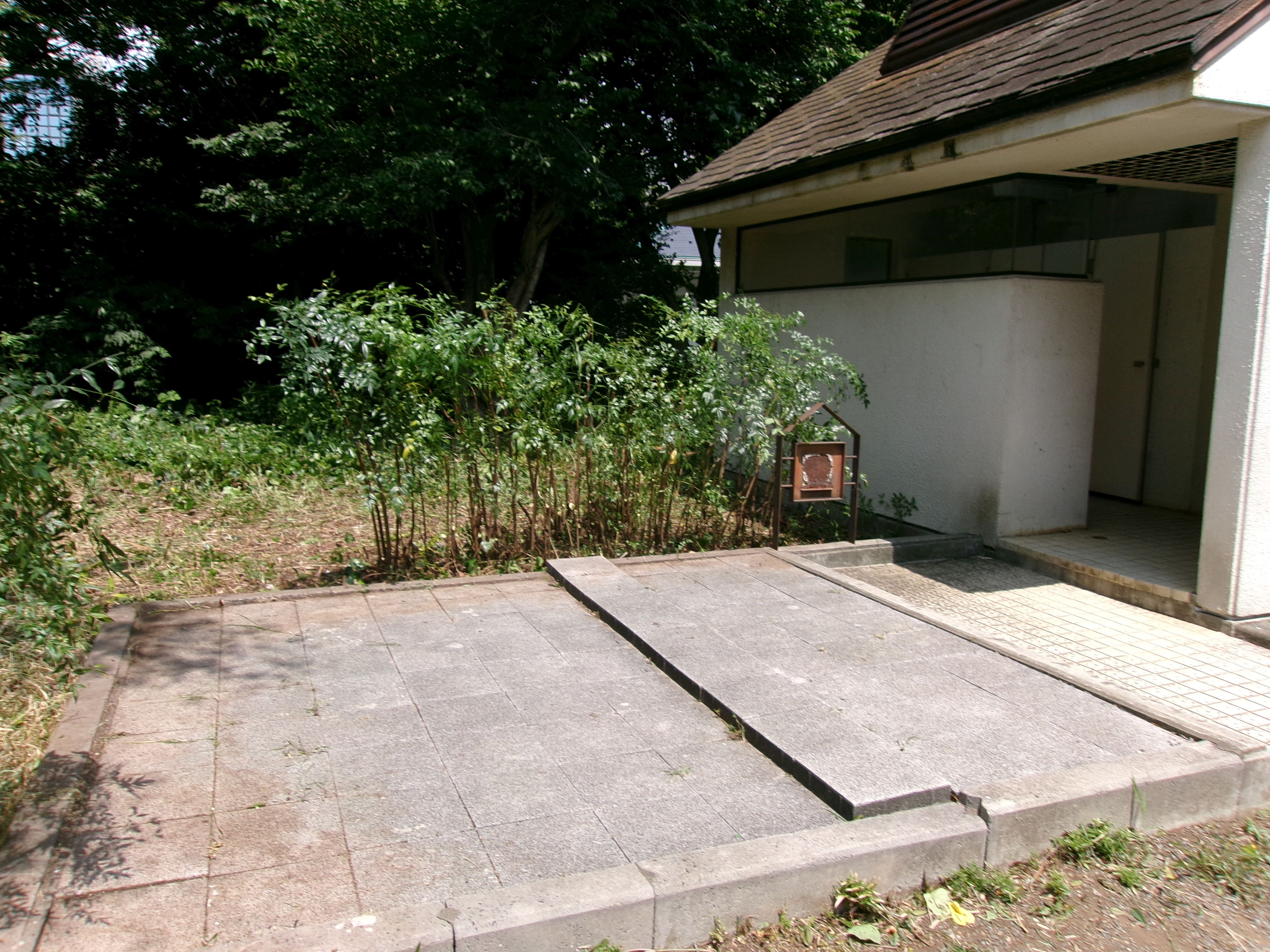女子トイレ入り口。ナンテンの木を数本だけ残し見違える様な感じ