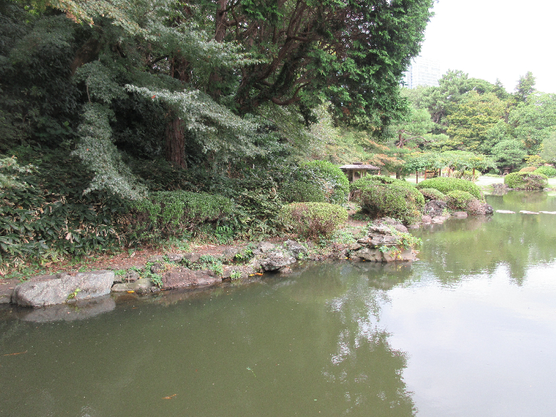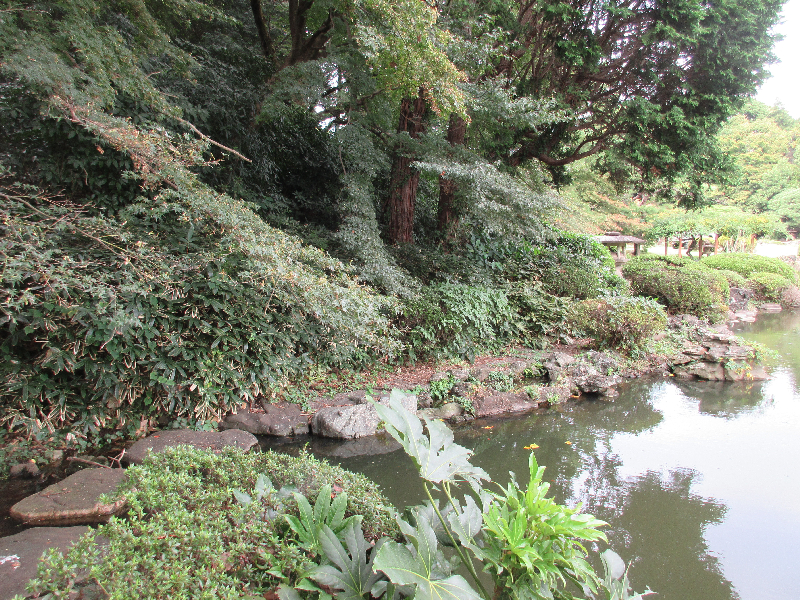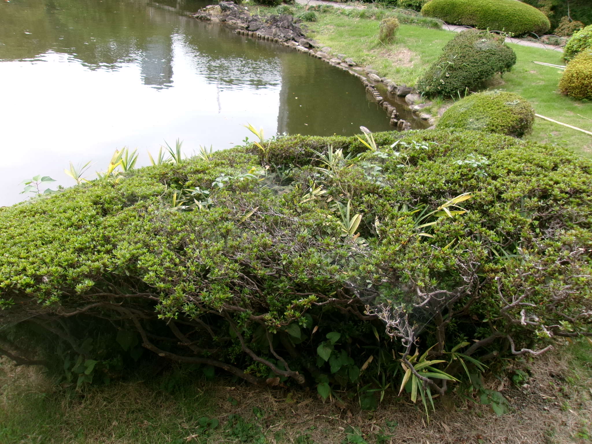 雑草を除去しツツジがきれいに見えるようになり池際がすっきり