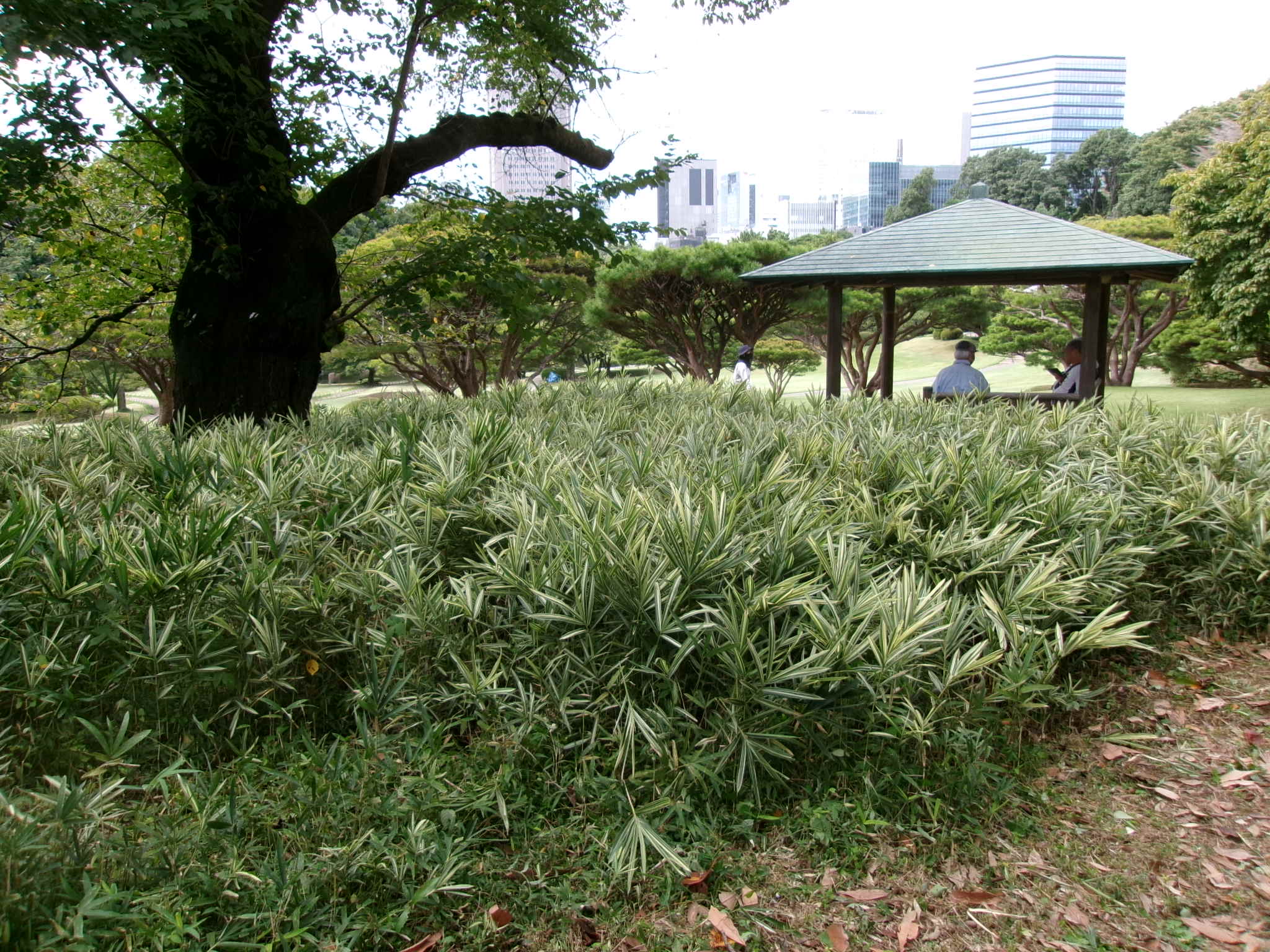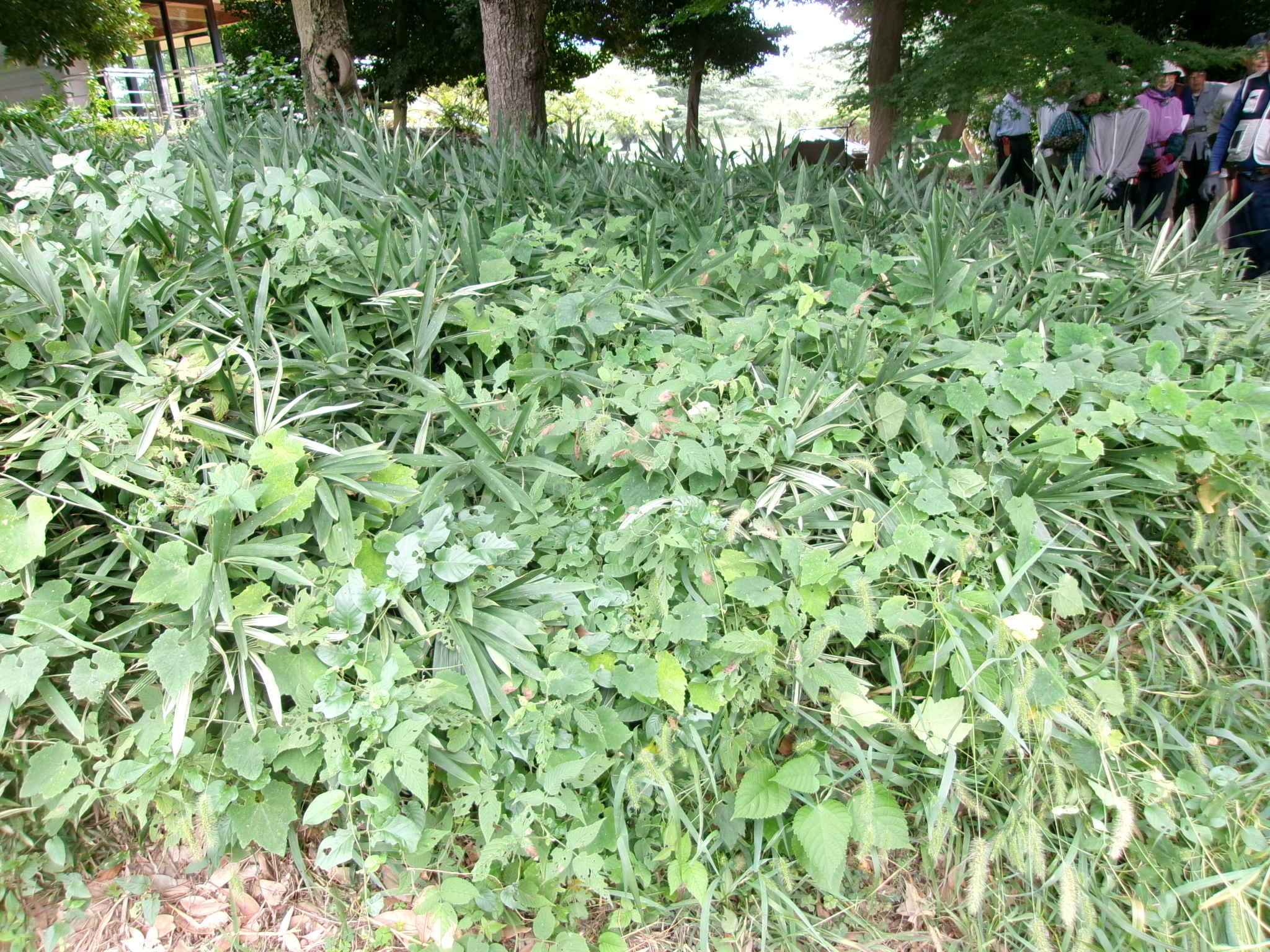 玉物の隙間からササが顔を出し見栄えが悪い