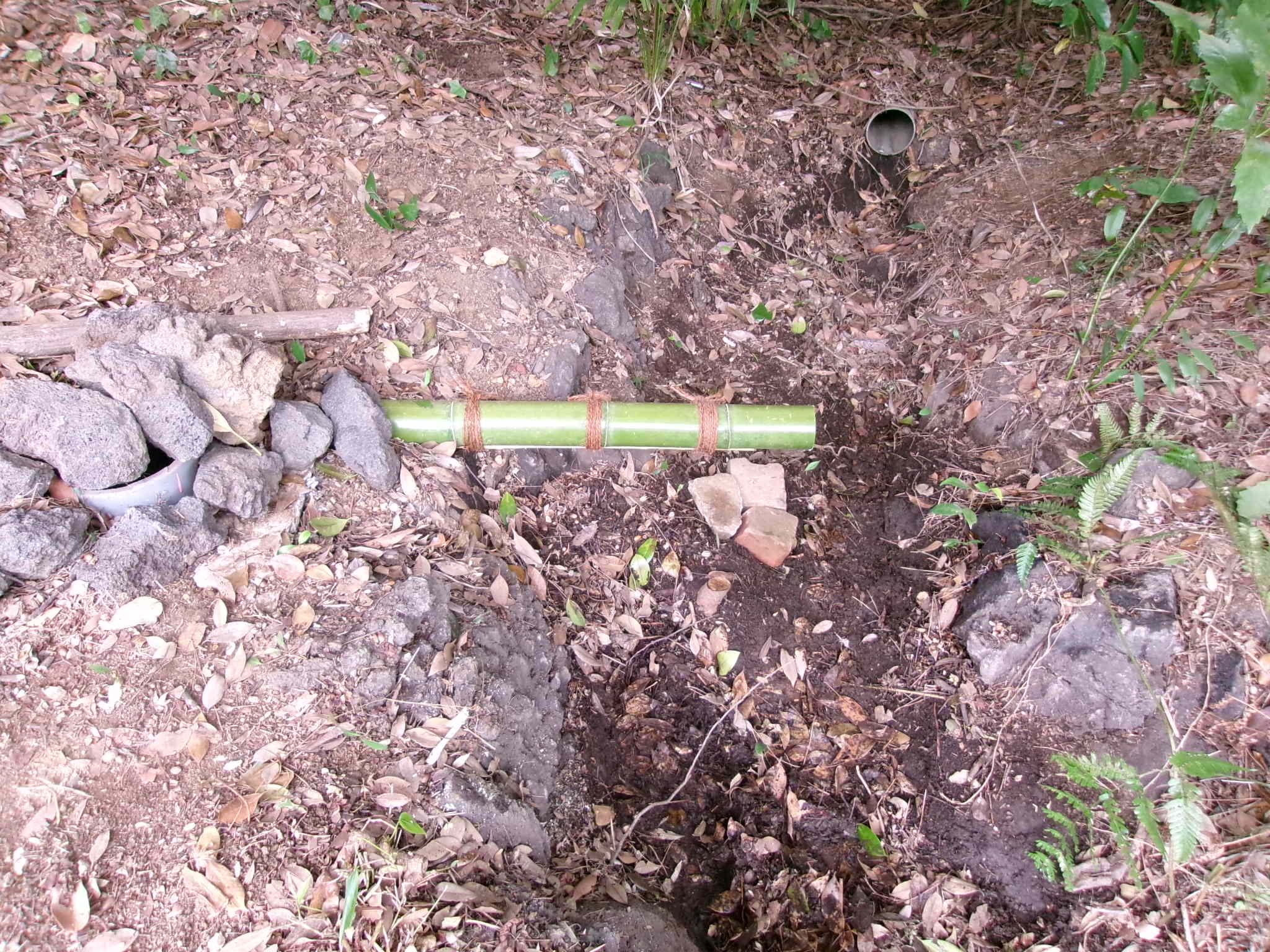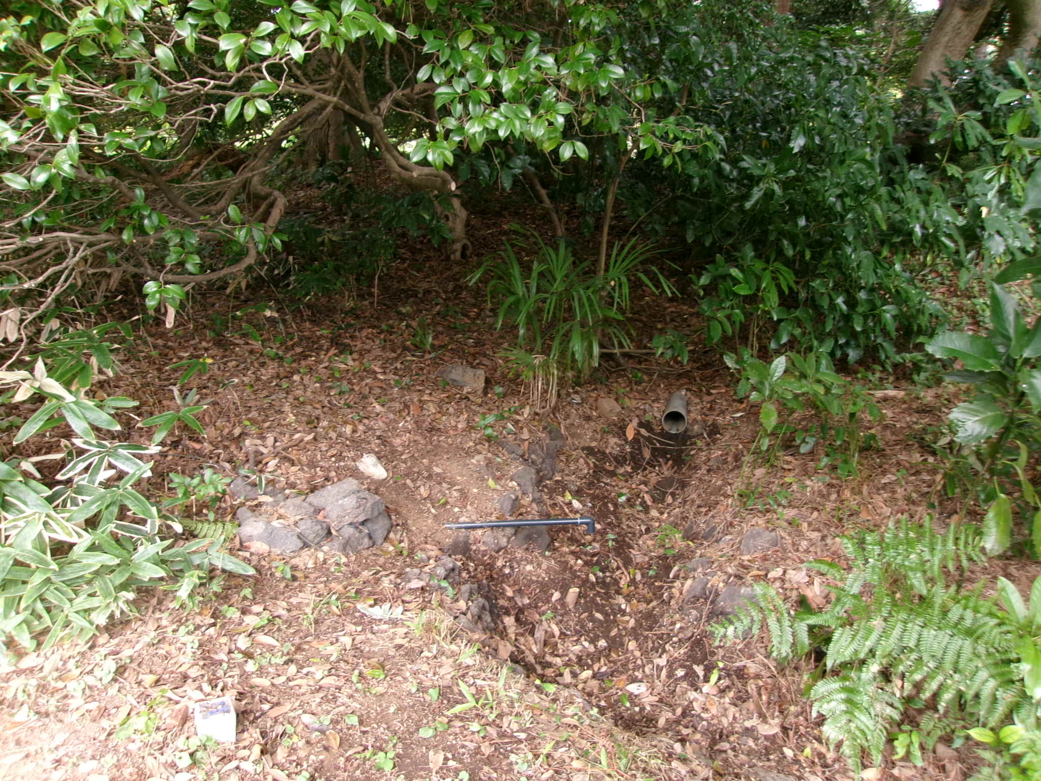 ツバキの下部を伐採したら水路が見えてきた