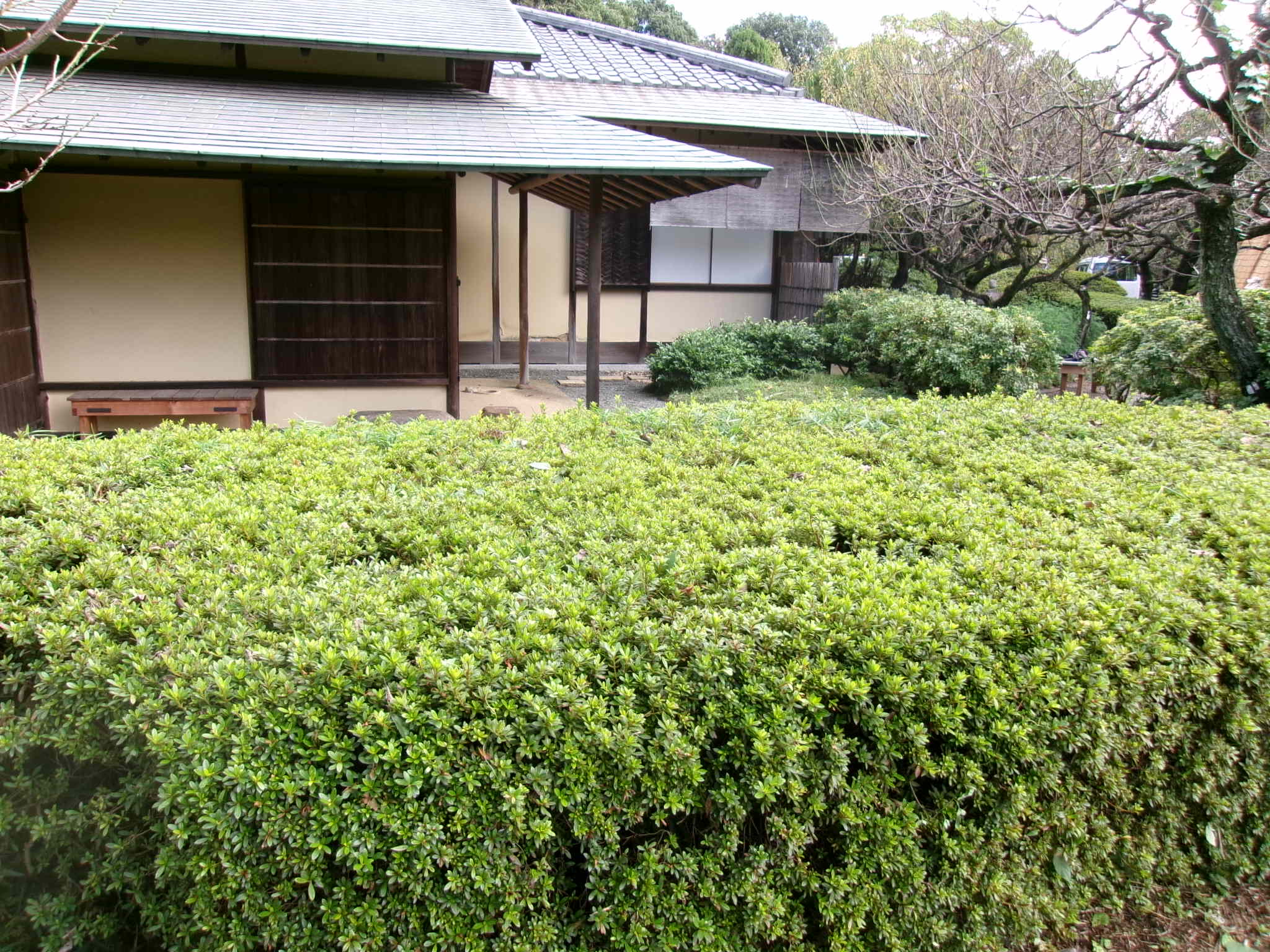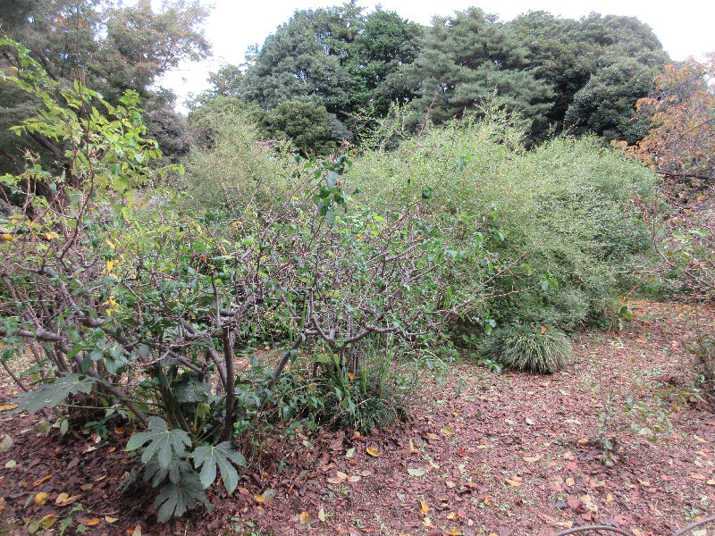 ボケの枝が伸びて大きくなっている(上の池南側)