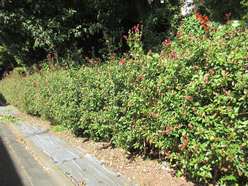 陽当りが良いせいか高さもまちまち で乱れた状態のベニカナメモチ