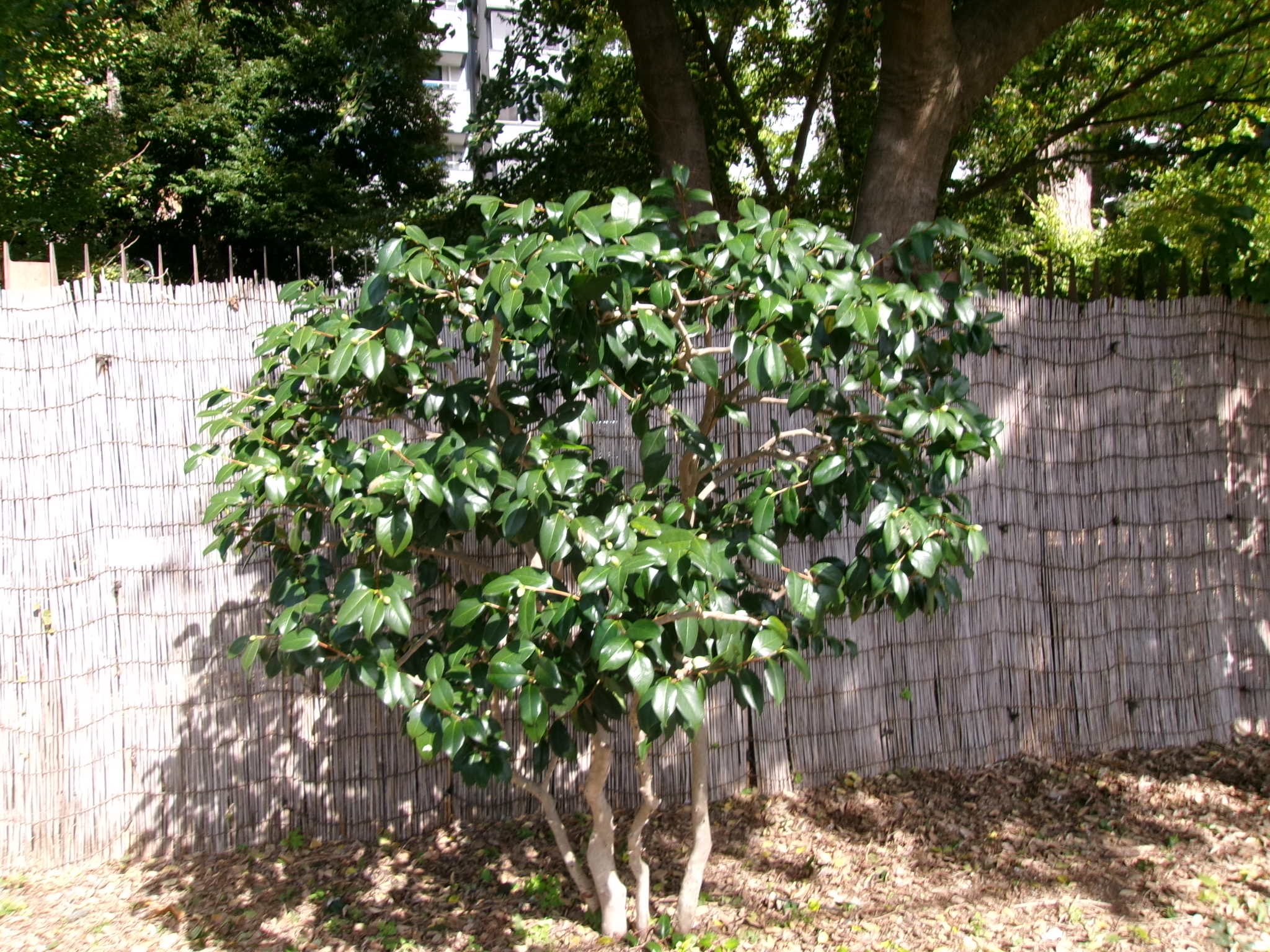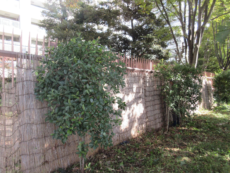 枝が伸びてフェンスより高くなっているカナメモチ
