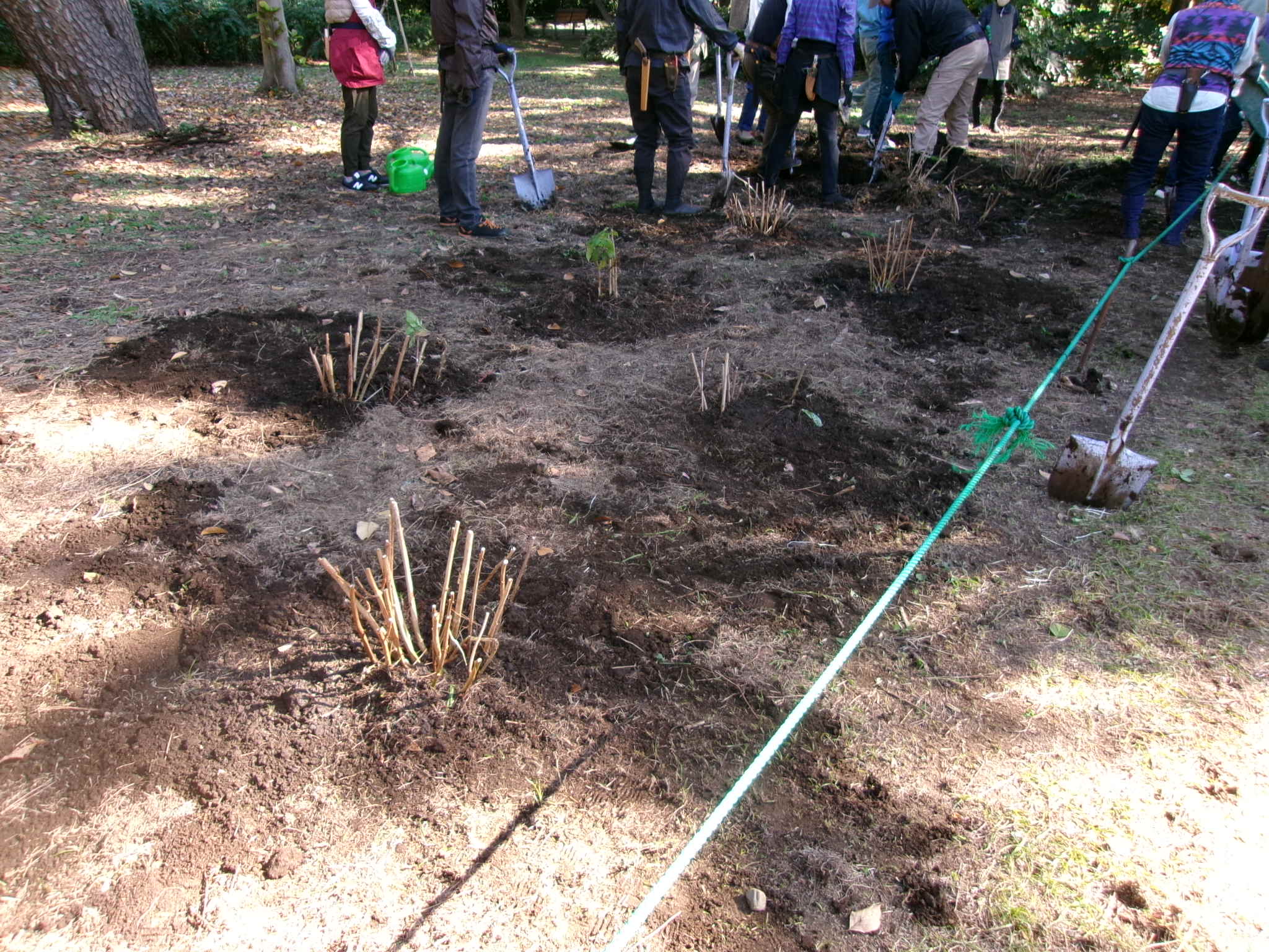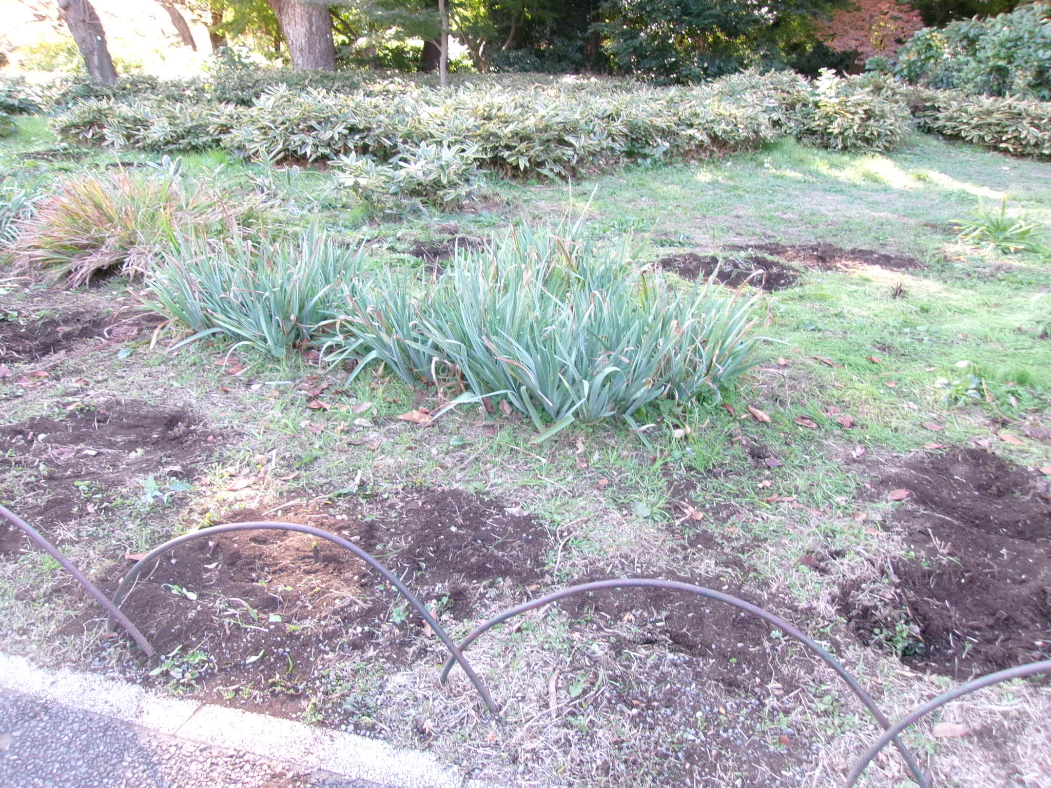 三角花壇から株が抜かれた跡