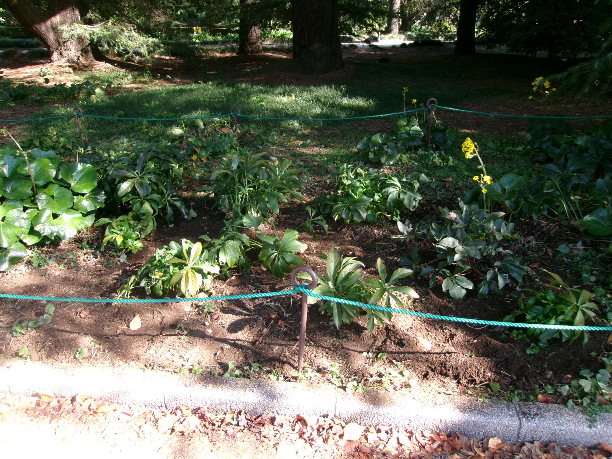 移植されたクリスマスローズ ツワブキが咲き始めている