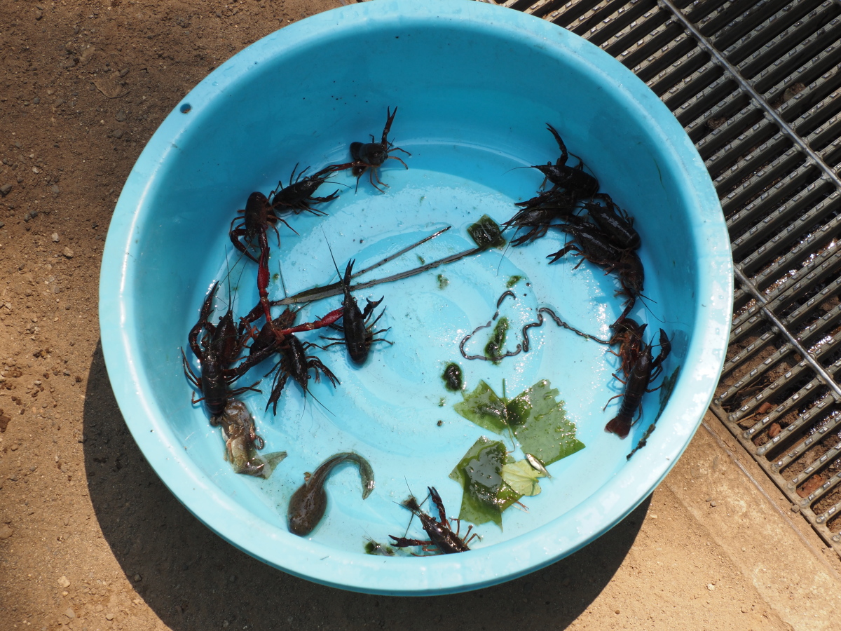 - ザリガニ駆除(14匹。プラス、ウシガエルのオタマジャクシ12匹)