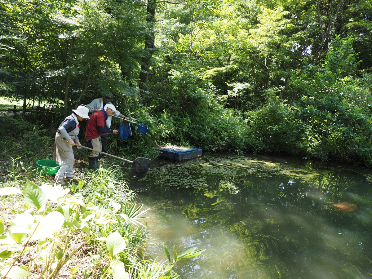 8月4日 上の池でメダカを見かけました。御苑内から放流された魚が順調に育っているようです。